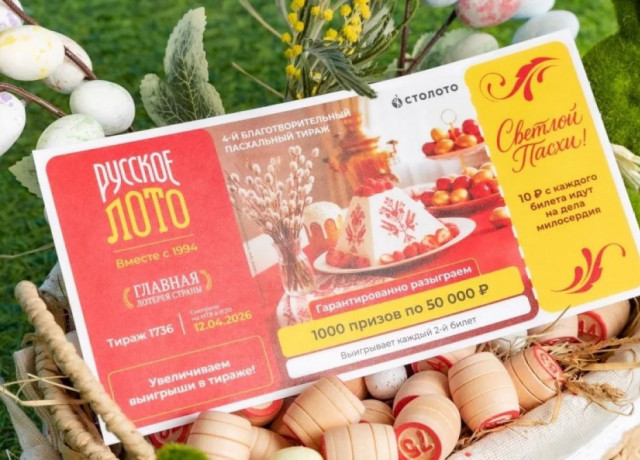 12 апреля в 8.20 утра будет разыгран очередной пасхальный тираж благотворительной лотереи «Русского лото» с джек-потом от 800 миллионов рублей!
