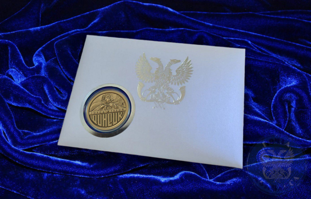 Она посвящена нашему любимому Донецку. На аверсе, на фоне знакомого городского пейзажа – терриконов и копров изображен главный символ столицы ДНР – роза. Ниже надпись – «ГОРОД ГЕРОЙ ДОНЕЦК»!
