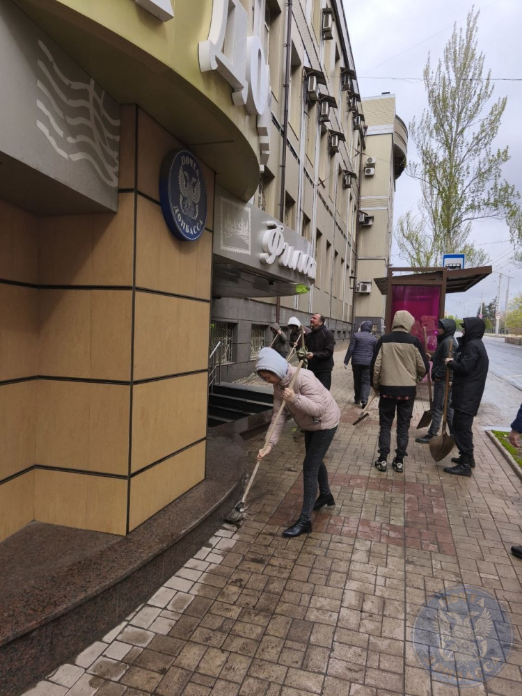 Сотрудники ПОЧТАМТА ЦПС г. ДОНЕЦКА начали традиционно с уборки. Совместными усилиями были собраны мусор и листва с близлежащих газонов, приведен в порядок фасад фирменного магазина «Филателия» и территория вокруг главного почтового здания ДНР.