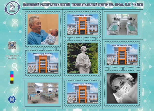 «Почта Донбасса» представляет новый почтовый блок «2 года Донецкому республиканскому перинатальному центру им. проф. В.К. Чайки». Уже с 3 апреля новый почтовый блок в продаже в фирменном магазине «Филателия».