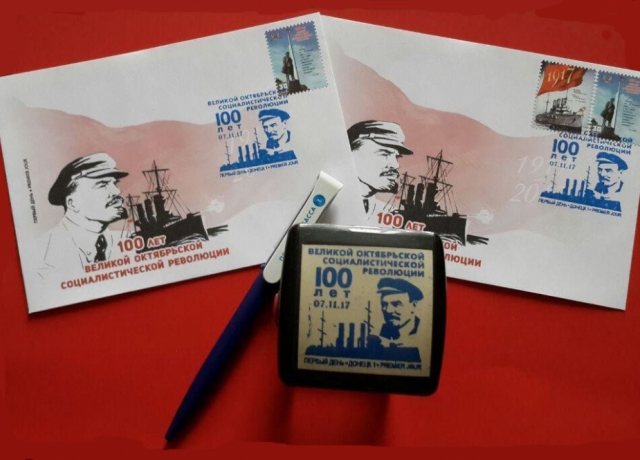 7 ноября 2017 года «Почта Донбасса» ввела в обращение художественную почтовую марку и конверт Первого дня, посвященные 100-летней годовщине Великой Октябрьской социалистической революции.