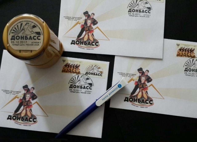 Сегодня, 5 октября 2017 года, в зале Донецкого республиканского краеведческого музея состоялось торжественное мероприятие ввода в обращение художественной почтовой марки и конверта Первого дня, которые «Почта Донбасса» посвятила 80-летнему юбилею заслуженного государственного академического ансамбля песни и танца «Донбасс».