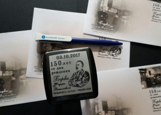 3 октября 2017 года в зале столичного магазина «Филателия» состоялось торжественное мероприятие ввода в обращение художественной почтовой марки и конверта Первого дня, которые «Почта Донбасса» посвятила 150-летнему юбилею выдающегося врача Фёдора Берви.