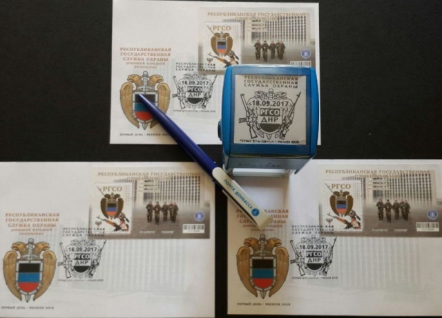 18 сентября 2017 года ГП «Почта Донбасса» вводит в обращение почтовый блок, марку и конверт, посвященные Республиканской государственной службе охраны ДНР.