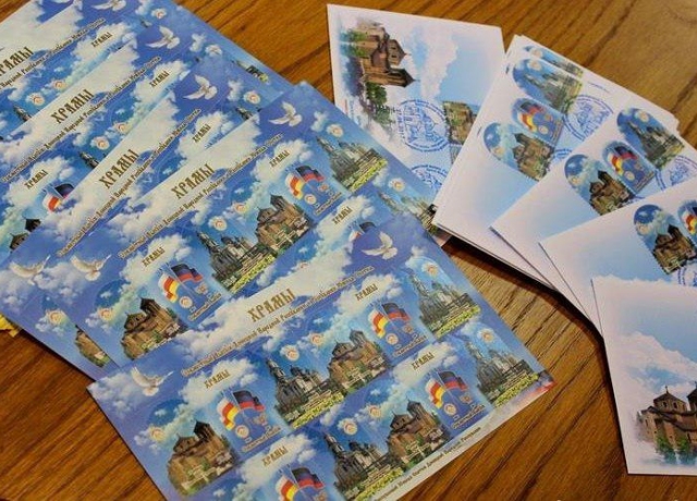 В честь третьей годовщины признания Донецкой Народной Республики Южной Осетией сегодня, 27 июня 2017 года, в Цхинвале состоялась процедура специального гашения совместного выпуска художественных почтовых марок «Храмы».
